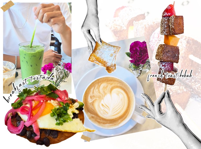 Now, let’s talk about the food… We sipped on a pistachio iced matcha latte (we’ve been deep in our matcha era lately) and a dreamy honey lavender latte that felt like a warm hug in a cup. As always, we had to order the beignets: pillowy, golden, and served with a side of dulce de leche for dipping. It’s the kind of treat that’s become my non-negotiable every time I visit.