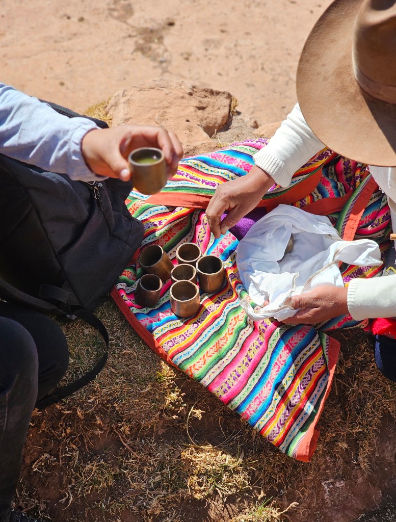 Due to the difficulty of walking at high altitudes, we took a few breaks during which the women offered us a homemade beverage and taught us to express gratitude to Mother Nature by offering a few drops of our libations to Mother Earth - Pachamama.